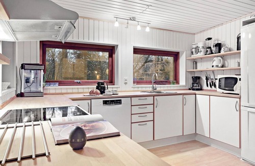 Your cosy holiday home offers you and your family the ideal setting for relaxing days in the midst of nature in Central Jutland. Leave everyday life behind you and relax in the bright living area, which lets in plenty of natural light thanks to the large windows. Make yourself comfortable in the cosy sofa area and enjoy the cosy warmth of the fireplace while you let your gaze wander into the spacious garden. Prepare delicious meals together in the well-equipped kitchen and enjoy them at the dining table with a view of the greenery.