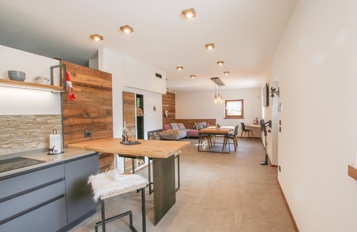 Discover the beautiful Tesino Valley on a vacation in this modern semi-detached house surrounded by beautiful mountains.