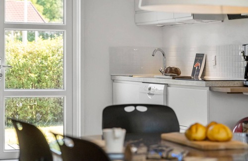 Your vacation home near Hvalpsund is the perfect retreat for relaxing days in the midst of picturesque nature. If the weather is fine, you can start the day with a delicious breakfast on the spacious terrace surrounded by the well-tended garden. Otherwise, there is a spacious dining table inside. The large window fronts allow plenty of light into the living area and create a bright and inviting atmosphere. Enjoy time with your family on the comfortable sofas, watch a movie or play board games while the warming fire crackles in the wood-burning stove.