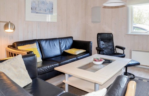 Really cozy cottage with two floors. Bedrooms on both floors. Table soccer in one of the bedrooms on the upper floor. In the kitchen-dining room there is a dining table and couch furniture. The sauna and massage tub are in the bathroom on the first floor. The natural plot is partly sheltered from view, the terrace is in the wind shadow. Good starting point for trips to Givskud Zoo, to Give for strolling, to Legoland and Legohouse with the children and for swimming in the adventure pool Lalandia.