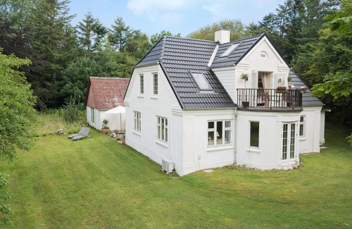 Welcome to this stylish home that offers you a great feel-good atmosphere and leaves nothing to be desired. Enjoy two floors of lovingly decorated rooms and a beautiful living room with plenty of reading material and pool table. Spend cozy evenings in the wing chair, fireplace or playing billiards. Enjoy the view of the countryside and the beautiful atmosphere in the garden. Here you can make yourself comfortable under the covered terrace or have your vacation meals outdoors. Go exploring in the large park garden with large rhododendron bushes, giant trees, forest lake, berry bushes and fruit trees. Your dogs can sniff around the garden and then walk with you through the small forest.