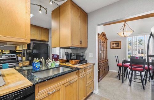 Beautiful home centrally located in Sarasota, & minutes from Lido Key, Siesta Key, & Anna Maria Beaches! Get away for your next vacation with all the comfort & amenities you'd need for getaway weekends, family visits, or extended stays. High-end, updated kitchen with new appliances, dining sets, & glassware. Back patio overlooks large, fenced yard. Living room has 55” TV & large, comfy leather reclining couches. Bathrooms include fresh linens w/ free shampoo & soap. Fenced yard and Pet-friendly!