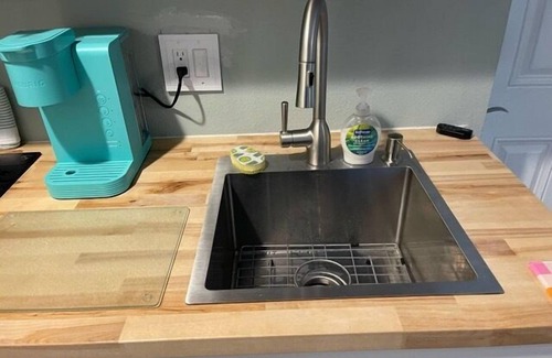 As part of Casa del Limone, tucked behind the main house, the guest studio rented separately is Paradiso dei Limoni, a charming private retreat in the heart of New Smyrna Beach, perfect for monthly rentals. Whether you're a retiree, snowbird, teacher on summer break, or simply someone lucky enough to take an extended vacation, this dreamy little retreat invites you to slow down and stay awhile. Located in a safe, laid-back neighborhood, just a short walk to the beach and the nostalgic charm of Flagler Avenue, youβll find yourself wandering with a snow cone in hand, soaking up the sweet feeling of Old Florida. Inside, the studio is cozy and comfortable β ideal for cooking slow meals, reading a good book, or curling up for a peaceful afternoon nap. This cozy unit features one bedroom, a loft with an additional bed, a kitchenette, and a comfortable sitting area β ideal for morning coffee, quiet reading, or evening unwinding. Thoughtfully designed, the guest house shares access to the beautifully landscaped courtyard-style backyard, complete with string lights, a firepit, hammock, loungers, grill, dining area, outdoor shower completed with bicycles for you to enjoy being fit or being a kid again β the perfect setup for barefoot evenings under the stars. The guest house also shares access to the full-size washer/dryer, and has parking for 1 vehicle in the driveway. Pet-friendly policy (1 small dog under 20 lbs with fee), every detail is designed to make you feel right at home.