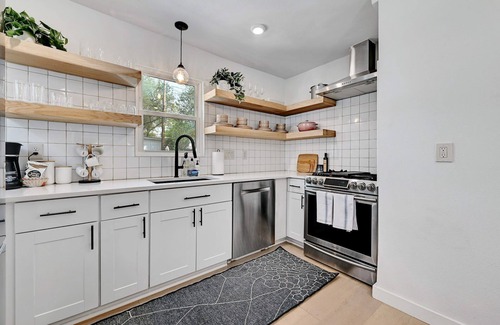 Enjoy staying at Webster for the fantastic South Congress neighborhood location! Just minutes from Austin's best shopping, restaurants, and coffee shops. It's the perfect spot for groups who want to get to know the city from a local's perspective while having a great place to relax after a long day of exploring. This 3 bedroom + 2 bathroom property sleeps 6 guests and has everything you need to make yourself home and more. The home features a cozy living room with new furniture, a large couch, lovely chairs, and a smart TV for entertaining. Webster has all the details: large backyard with turf - perfect for those traveling with a pet, a Cowboy pool in the backyard, cornhole boards, a wonderful covered patio, a great seating dining room, and a large kitchen with a clean, modern layout. In addition, the home features wood floors for a fresher, cleaner feel. Here you have all the elements for an enjoyable time in Austin with your family, friends, or colleagues. We invite you to share in good company and stay awhile with Renters Club.