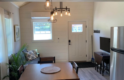 Completely furnished open concept living area (with full size sleep-sofa for maximum occupancy for 4) with full kitchen, 1-bedroom with queen bed with new foam mattress topper, 1-bath, cable and WIFI, heat pump, private outside area with seating for 4, barbeque grill, fire pit, and lobster cooker.