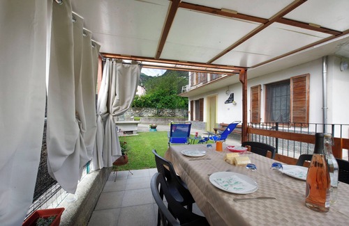 The accommodation, located on the ground floor, consists of a living room with kitchen, one bedroom with a double bed, and one bedroom with a single bed and a crib. Outside, you will find a green area equipped with deck chairs and a covered patio for outdoor dining. Private parking is available. Small pets are welcome.