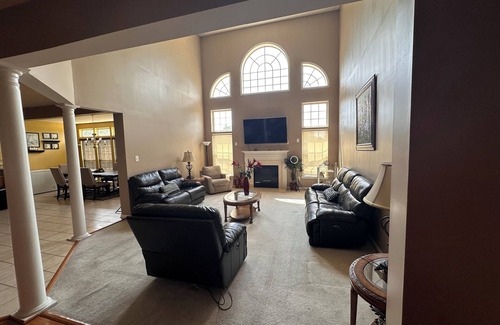 Enjoy an expansive 5000 sq ft of indoor space sitting on a beautiful 7.7 acres of land! This property has a large patio, a swingset for ichildren, private parking, and a basketball hoop. Inside, you can find several spacious bedrooms, a fully-equipped kitchen, a large family room with reclining couches, and a solarium perfect for indoor relaxation. Just a short drive from Clinton attractions such as the historic Red Mill Museum Village, Beneduce Vineyards, and Main Street’s unique shops and galleries. Explore the outdoors at the Columbia Rail & Landsdown Trails, and eat at Clinton Station Diner, NJ’s #1 24-hour diner! Note: The outside of the property is monitored by security cameras.