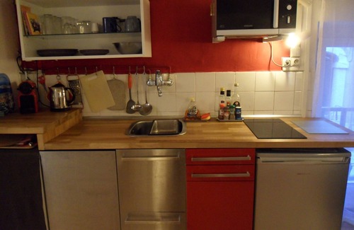 Small studio of 21 m2. It is a mezzanine, above a garage (former stables), in the courtyard of an old building in the center of Marseille. The studio is not large, low ceiling (2 meters), and not very sunny. On the other hand, it has charm, with its own small access staircase (short, but steep!). Furnished and decorated with care, it has everything you may need for short stays.