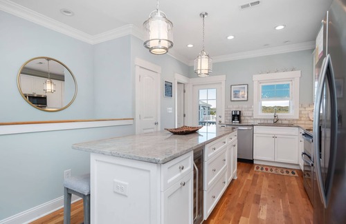 Enjoy wireless internet throughout as well as cable and streaming capabilities with a guest account available through ROKU on all TVs. The kitchen features stainless steel appliances as well as state of the art countertops making it the perfect place to whip up a delicious meal or spend quality time around the large island with family and friends.