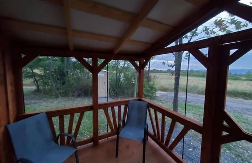 Get away from it all when you stay under the stars. This is a beautiful off grid cabin located out in nature. It’s a one room cabin with two queen sized beds. There is no running water, however a portable restroom is at the cabin. 12V lighting & USB ports for charging phones. Enjoy the scenic views from the outdoor fire pit or on the screened in porch!