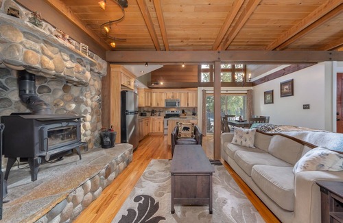 hit the slopes early, this level corner lot right off of Highway 4 is ideal. Forced Air Heat and wood stove keep you warm in the winter! Pinecone Peak sleeps 8 guests in 2 bedrooms plus the loft. Bedroom 1 is located on the main floor with a Queen bed. Bedroom 2 is upstairs with 2-day beds (2 Twins). The loft has a Queen bed and a full futon. There is also a sleeper sofa on the main floor.