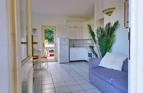 It includes a furnished front veranda and a space at the back where an outdoor shower is available. Inside the house, you\'ll find an iron, a television, and a sofa. Air conditioning and a washing machine are provided, along with internet access (WiFi). The gas-operated kitchen is equipped with a refrigerator, oven, freezer, sufficient crockery and cutlery, various kitchen utensils, and the essential Italian coffee maker.
