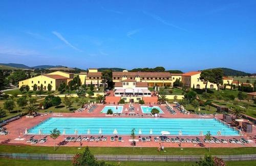 Near the dream beaches of the famous Gulf of Baratti: Former agricultural estate, embedded in a spacious and well-kept garden. The 8 buildings have been faithfully restored in the original Tuscan style and transformed into a beautiful holiday resort with elegant, tasteful apartments. A special highlight is the large pool, which even has Olympic dimensions. There are also two other pools - one for adults (with hydro-massage) and one for children. Enjoy good Tuscan cuisine in the farm's restaurant. In high season, guests can take advantage of the Gulf Beach shuttle service for a fee. Other long, natural sandy beaches with pine forests in front of them stretch as far as San Vincenzo. Activities nearby: Visit San Vincenzo with its new port and small center. Take a trip through the "Cornia Valley", the well-known wine route and stroll through the medieval village of Suvereto. A day trip to the island of Elba is also recommended - the ferries to Elba leave almost every hour in Piombino (10 km). WiFi only available outside.