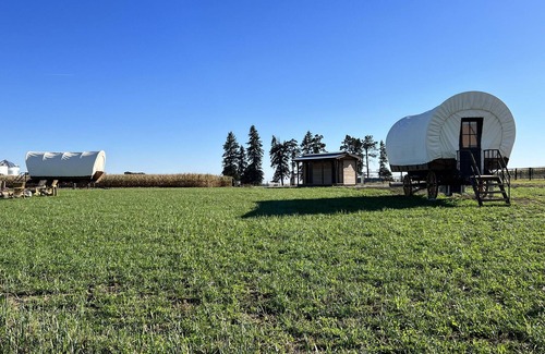 Pioneer's Dream~1883 Inspired~Covered Wagon~Bison~Private Bathroom~Heat and A/C | Cabin in Malcom