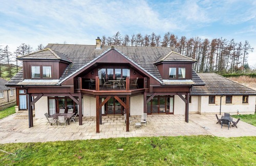 Separate Toilet 2.. Biomass central heating, gas, electricity, bed linen, towels and Wi-Fi included. Highchair and stairgate available on request. Welcome pack. Large, lawned garden with decked patio and garden furniture. Balcony. 500-acre grounds (shared with other properties on-site). Indoor heated swimming pool (private, 10m x 5m, depth 1.5m), spa area with shower facilities. Private parking for 4 cars. Bike store. No smoking. Please note: Sorry, no hen or stag parties. This property has a security deposit of £500.. Look no further than this fantastic, detached house for your next family gathering or celebration, a truly wonderful choice for those special events or for a relaxing pampering weekend. Featuring its own fabulous indoor pool and spa area, guests will feel like they are in their own personal hotel but on a timetable to suit themselves. The living spaces flow easily between each other enabling guests to enjoy getting together or finding a space for more peaceful moments. The spacious kitchen with a large island, breakfast area and family sitting area leads through to a large dining room, which seats ten, and further to a generous living room and sunroom, all with French doors leading onto the expansive deck which overlooks the Piperdam golf course and loch. The master bedroom suite is also situated on the ground floor and boasts a super kingsize bedroom with dressing room and en-suite bathroom, perfect for less mobile guests. The grand hallway with sweeping staircase leads to two distinct up stair areas.