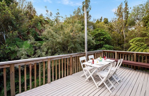 The living area flows out onto the large outdoor deck amongst native bush treetops. This is the perfect place to enjoy an evening drink as you listen to birdsong. Fire up the BBQ and enjoy dinner al fresco on the deck!