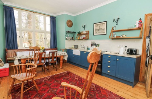 Plas Pontfaen, a three-storey house with cellar, consists of a kitchen/diner with electric oven and hob, microwave, fridge/freezer, dishwasher, dining seating for eleven people, and open-fire, a utility with washing machine, tumble dryer, fridge/freezer and separate utility with basin and WC. It also includes a sitting room with woodburning stove and Freeview TV. The bedrooms consist of a half-floor double with en-suite shower room, first floor double with basin, first floor twin with basin, first floor twin and second-floor family room with cloakroom basin and WC, as well as a first floor bathroom. WiFi (can be intermittent), fuel, power, logs for woodburning stove, bed linen, and towels inc. in rent. Outside, there is a non-enclosed garden with lawn, barbecue, and furniture, and ample off-road parking with EV charging point. Two well-behaved dogs welcome. Sorry, no smoking. Plas Pontfaen is a lovely base for a Pembrokeshire getaway. Note: Steps up to the property. Note: Spiral metal staircase to second-floor. Note: Bring own EV charging cable.
