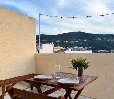 Food & DrinkBottle of water, Tea/Coffee makerBathroomShampoo, Hairdryer, Towels, Bathtub or shower, Shower, Free toiletries, Toilet, Private bathroom, Body soap, Toilet paper, ConditionerMedia & TechnologyTV, Flat-screen TV, Streaming service (like Netflix)GeneralTile/Marble floor, Key access, Iron, Trash cans, Private entrance, Heating, Air conditioningKitchenElectric kettle, Coffee machine, Washing machine, Dining table, Kitchenware, Kitchenette, Refrigerator, Wine glasses, Cleaning productsLiving AreaSofaViewLandmark view, View, Sea view, City viewBedroomLinens, Wardrobe or closetOutdoorsTerraceAccessibilityUpper floors accessible by stairs onlyBuilding CharacteristicsPrivate apartment in buildingRoom AmenitiesNon-feather pillow, Clothes rack, Sofa bed, Socket near the bedPhysical distancingSingle-room AC for guest accommodation |