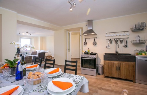 • Equipped with all the necessary crockery and utensils, as well as a cooker hob with oven, a double sink, a coffee machine and dishwasher