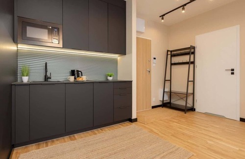 This stylish flat belongs to a new residential development on Podskarbinska Street in Warsaw's Praga district. The flat is located on the 3rd floor of the building, overlooking a quiet, green neighbourhood. The flat's location in a neighbourhood on the right side of the Vistula River provides excellent accommodation in an intimate place away from the hustle and bustle of the centre. In the vicinity of the flat you will find everything you need for a successful leisure stay in Warsaw - restaurants, cafés and grocery shops. The surrounding area offers access to a variety of entertainment and attractions - just 1.5 km from the flat is the fantastic Neon Museum, where you can admire the luminous advertisements that adorned Polish streets in the previous century. Moreover, only a half an hour walk is enough to reach the beautiful Skaryszewski Park (2.5 km) with its children's playground, amphitheatre and Kamionkowskie Lake. Right next to the park you will find one of Warsaw's biggest attractions - the Pge National Stadium (3.5 km). Praga is well connected with other districts of the capital. The flat is located 2.5 km from the Warszawa Wschodnia railway station, from where you can quickly get to the centre itself by taking the Mazovia Railway train. There are also numerous bus and tram stops in the area. It takes more than half an hour to reach Chopin Airport by car or taxi.