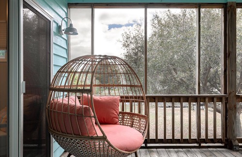 Bedroom #1: Queen Bed, TV, Shared Bath, Screened Porch Access
