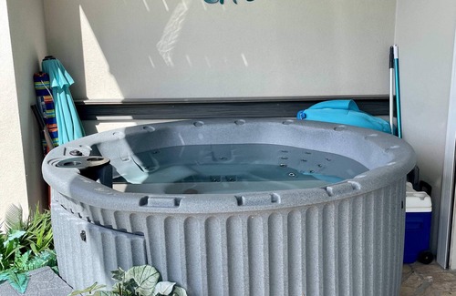 *Relaxing ocean view patio with a private jetted hot tub, comfy seating and a BBQ
