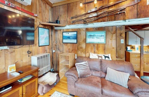The cabin sleeps four and has all the essentials for a Vermont getaway; the main level has an open floor plan with large windows in the living room for natural lighting, including fast WiFi, a 50" Roku 4k Tv, and heat/air conditioning and a kitchen for cooking your favorite meals, bathroom with stand up tile shower, and a bedroom with two twin beds. Upstairs is the sleeping loft with a double bed and sitting area.