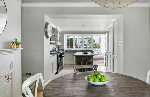 The ground floor kitchen and open plan dining room have a touch of French farmhouse.