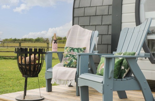 Amenities: Gas central heating with underfloor heating. Two-ring electric hob, microwave, fridge/freezer. TV. Fuel and power inc. in rent. Wifi. Bed linen and towels inc. in rent. Front seating area with decking, lawn and furniture. One well-behaved dogs welcome, second dog on request. Sorry, no smoking. Shop 1.2 miles, pub 1.5 miles, beach 2.2 miles. Note: There are steps up into the pod, please take care. Note: The seating area is not enclosed, please take care. Note: This pod does not offer WiFi. Note: Check-in from 2pm and check-out by 10am. Note: Whilst on the park, please ensure any pets are kept on leads at all times.