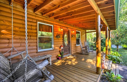 Porch & Fire Pit: Rustic Log Cabin in Smokies! | Cabin in Cosby