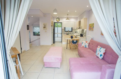 Our semi detached maisonette is part of a 3 maisonettes complex. It is located in a prime spot of Porto Rafti enjoying panoramic views, natural environment and tranquility. At a 5 min walking distance there is the wonderful sandy beach of Panorama and at a distance of 5 min by car, there is the open long sandy beach of Avlaki Porto Rafti, where we can also find many coffee shops umbrellas and deckchairs.