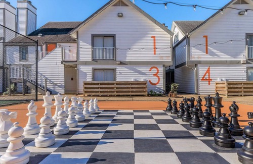 This property offers a variety of family friendly amenities. There is a private pool with sun deck, heated spa, multiple grilling stations, bark park, corn hole, sand volleyball, life size outdoor chess board game, free private parking, free Wifi, outdoor play equipment, state of the art fitness center, study areas and rooms!