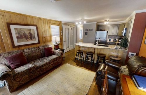 With a new and modern interior, meticulous attention to detail went into the tasteful updates of this this 1 bedroom condominium. Upon entering the unit, youll appreciate a warm and inviting sense of home. The open kitchen has stainless appliances, granite countertops and bar seating that flows into the living area. The living area is comfortably furnished and offers guests the coziness of a wood burning fireplace. Step outside the living room onto a covered deck where youll enjoy the views of the Camp 4 trail, as well as easy and convenient access to the Powderidge Lift during peak season. Heated floors have been installed in the bathroom. Adding to its charm, your pets are welcome. Distance To Slope, This room is adjacent to the Powderidge Lift and the north mountain slopes, with up to a 100 yard walk. For your convenience there is a free shuttle for additional slope access. Please note the north Mountain slopes may not be available early and late season. This unit is also Pet Friendly.