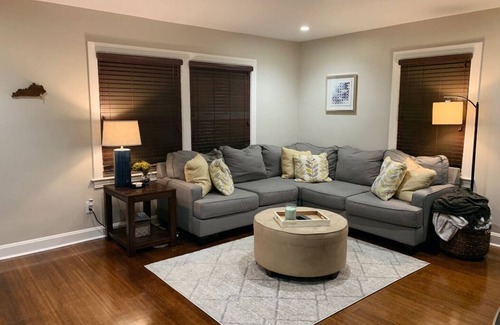 10 minutes from Churchill Downs!! Wonderful, well-located Cape Cod home close to everything in Louisville! 2 full bathrooms, 2 bedrooms both with Queen-sized beds, 1 nursery, cozy living room area, large eat-in kitchen, outdoor patio with seating for 10 people, and a hot tub! Less than 1 minute drive to access major interstates. We are 8 minutes from the Louisville airport, 10 minutes from downtown Louisville, and close to lots of malls, shops and restaurants in the St. Matthews area!