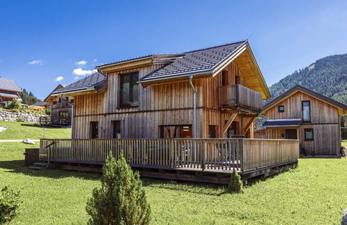 On 100 m², the Premium Holiday Home # 7 with IR sauna & hot tub offers ideal space for 6-8 people. The chalet has 4 bedrooms, 1 bathroom with shower (hairdryer available), as well as a furnished terrace and a balcony. You sleep in comfortable double beds, one of the bedrooms is equipped with bunk beds. You can relax to your heart's content in the infrared sauna and outdoor jacuzzi.The open kitchen in the Premium Holiday Home is fully equipped: cutlery and (cooking) crockery are available, a ceramic hob, oven, dishwasher and a refrigerator with freezer compartment are also part of the equipment, as are toaster, kettle and a coffee machine.A small ALPS RESORTS starter set with dishwasher tabs, dishwashing liquid (sample), sponge, bin bags, cleaning and dish cloth is ready upon your arrival.WiFi is free, satellite TV.The highlights of the holiday home:•Holiday home in Hohentauern, Murtal, Styria•Private spa with infrared sauna & whirlpool•Mountain view•Quiet location in the midst of nature and at the beginning of the village centre•A few metres to the ski slope•Hohetauern guest card included•Free WiFi throughout the house•Spacious sun terrace•Space for the whole family•Pets welcome (upon request)