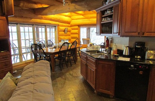 Rental includes use of the main lodge and facilities, bedding, bathroom towels, an equipped full-service kitchen, firewood, use of miles of trails, and use of canoes and lake kayaks, use of the whirlpool/hottub, basketball area and play-yard - and is inclusive of 6 guests. There is a small additional fee per person above 6 guests, and any rental above 6 guests automatically comes with the additional bunkhouse space. **There are also adjacent properties available to accommodate larger groups - please inquire.