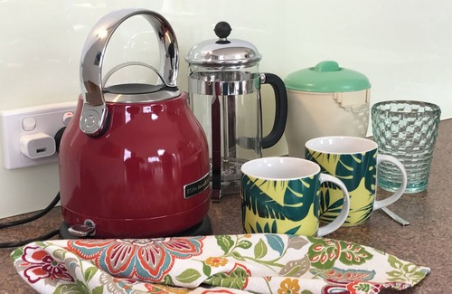 The split level Shed is spacious at over 70sqm plus large outdoor entertaining decks. The lower level area includes a well equipped kitchen/dining area with all the mod cons.