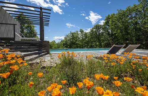 Located in Southern Ardèche, in a natural and calm environment, La Blanche is a 48 m² gîte which can accommodate 4 people. It has 2 bedrooms, one with a double bed (140cm) and the second with 2 single beds (90cm). Its kitchen is equipped with quality household appliances: fridge, dishwasher, washing machine, microwave, toaster, filter coffee maker. The swimming pool is shared with the 3 other lodgings which constitute this small holiday domain.