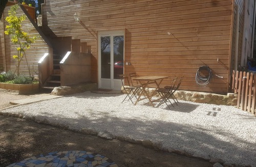 T1 of 37 m2 new in an idyllic setting on the ground floor of an inhabited family villa (Karin lives on the 1st floor with his spouse) at the foot of the Pagnol hills. But calm, rest and privacy guaranteed.