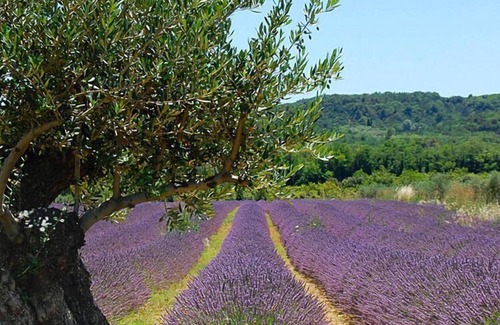 You will stay in absolute tranquillity in this tastefully restored mazet with its 55 sqm wooden terrace. The cosy cottage is located at the top of a historic stone village on the southern slope of the wooded ridge La Lance. From here you can hike on signposted trails up to the 1350 m high summit (5 km). The wooded hill behind your terrace offers beautiful views of the sunset valley of the Enclave des Papes, where lavender and wine thrive. In low season, a lovely wood-burning stove in the large living room spreads a pleasant warmth. The Drôme Provençale region, which has largely been spared the tourist crowds of the southern French coastal regions, is an insider's tip for anyone looking for a special ambience in magnificent nature. Characterised by lavender and olive cultivation, evergreen forests, rugged rock formations and gorges, this area is ideal for hiking and mountain biking. In the sleepy village of Le Pègue, which in Roman times was on a trade route from Marseille to Lyon, excavations have unearthed finds of Greek pottery, which you can now discover in the local museum.