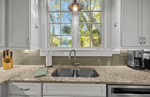 You'll notice that this house offers a storied feel, along with a modern vibe as it has gone through several upgrades, such as new furniture and décor, a remodeled hallway bathroom, and a redone kitchen! When you step into the main living area of the home, you'll be greeted by a handsome space with comfortable furniture, beachy décor, and a large flat-screen TV with cable access. The best part about this house is that there is also an additional den with another 42” flat-screen TV, giving your group multiple areas to unwind and relax—you could even have one for the kids and one for the adults!
