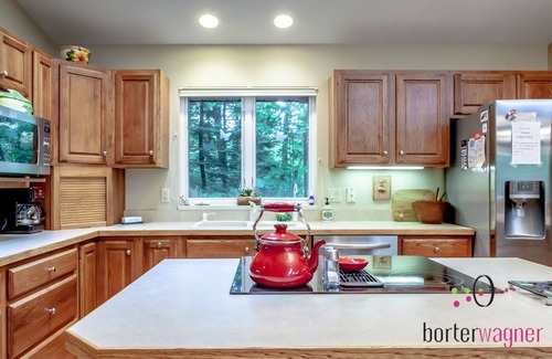 Entertaining options abound in a smart cook's kitchen with center island , living room with wood burning stone fireplace, perfect for curling up with your favorite book or movie.