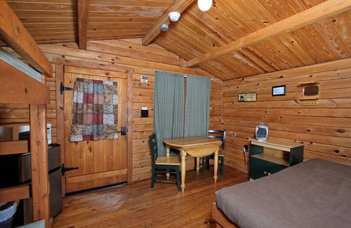 PC1 can accommodate up to 4 people with 1 full mattress and two single bunks (these bunks are 27 inches wide and 74 inches long). There is a microwave and mini fridge inside the cabin. There is also a small space heater for those chilly evenings. The cabin is equipped with a small table with two chairs. There is firewood available for purchase as the cabin is equipped with a picnic table and fire ring. Please note- THERE IS NO BATHROOM, SHOWER OR RUNNING WATER inside the cabin but our heated bathhouse is just a short walk away with toilets and hot showers. We will provide fresh sheets on the bed, however we will not provide pillows, blankets, washcloths or towels. You can also have any size pet in PC1 (There is an additional fee of $10.00 per pet per night). This cabin is NON SMOKING. Check in time is any time after 3 pm.