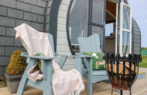 Amenities: Central heating with underfloor heating. Two-ring electric hob, microwave, fridge/freezer. TV. Fuel and power inc. in rent. Wifi. Bed linen and towels inc. in rent. Front seating area with decking, lawn and furniture. One well-behaved dogs welcome, second dog on request. Sorry, no smoking. Shop 1.2 miles, pub 1.5 miles, beach 2.2 miles. Note: There are steps up into the pod, please take care. Note: The seating area is not enclosed, please take care. Note: This pod does not offer WiFi. Note: Whilst on the park, please ensure any pets are kept on leads at all times.