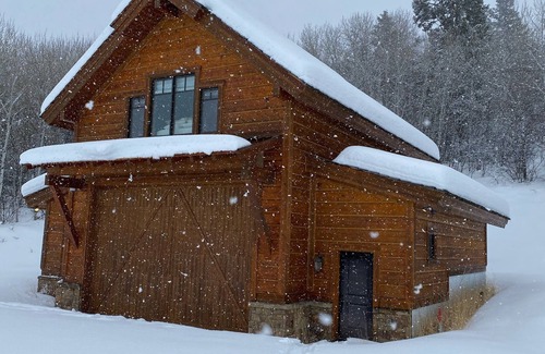 Mountain cabin in beautiful Swan Valley. Private mountain retreat on 45 acres with stunning valley, Snake River, and partial Teton views. One hour drive to Jackson Hole. Minutes from fishing on the famous South Fork of the Snake River. The cabin has garage on the main floor and living space above. There is a long set of stairs to reach the living space.