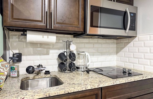 You'll have the convenience of your own private bathroom. The apartment also includes a full kitchen, equipped for preparing meals during your stay. Entertainment is provided through a TV and reliable Wi-Fi access. For your comfort and convenience, towels are provided, and a washer is available directly in the unit for any laundry needs.