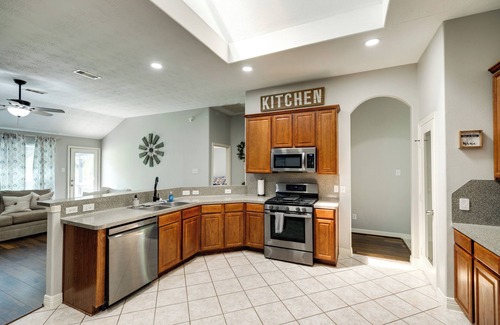 Escape to Baytown and stay at this spacious vacation rental. Enjoy a picnic with your loved ones in Town Square or catch some rays at Sylvan Beach Park before visiting the awe-inspiring Space Center Houston! Ready to unwind? Return to the 4-bedroom, 2-bath house, gather under the pergola or around the fire pit, and share your favorite parts of the day. Your Lone Star retreat awaits!