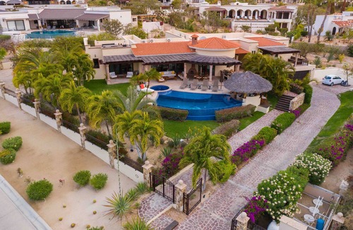 Casa Los Amigos is a luxurious villa located in the ultra-exclusive, gated community of Fundadores in Puerto Los Cabos. When you arrive to Casa Los Amigos, you will fall in love with the beautiful gardens surrounding this amazing villa. As you enter Casa Los Amigos, the main living area features expansive glass doors that open to breathtaking views of the Sea of Cortez. In the middle of this impressive villa is a cozy courtyard that features a fire pit area and space for fun games and activities. The house has a fully-equipped gourmet kitchen that offers you options to dine or cater in as well as to cook full meals for those that love to cook!