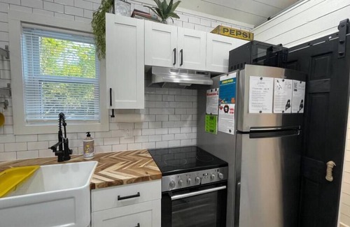 • 2 queen-sized beds each in a sleeping loft (keep in mind this is a tiny home, so head height restrictions do apply)