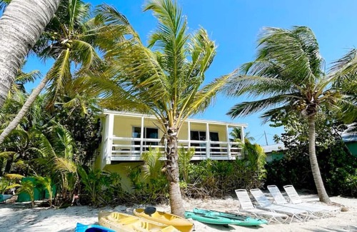 One of a kind two bedroom beach bungalow right on the beach, deck with direct ocean views, sandy beach, a tropical ambiance and a family friendly setting that will make you feel like you are in your own private island and where memories are made.